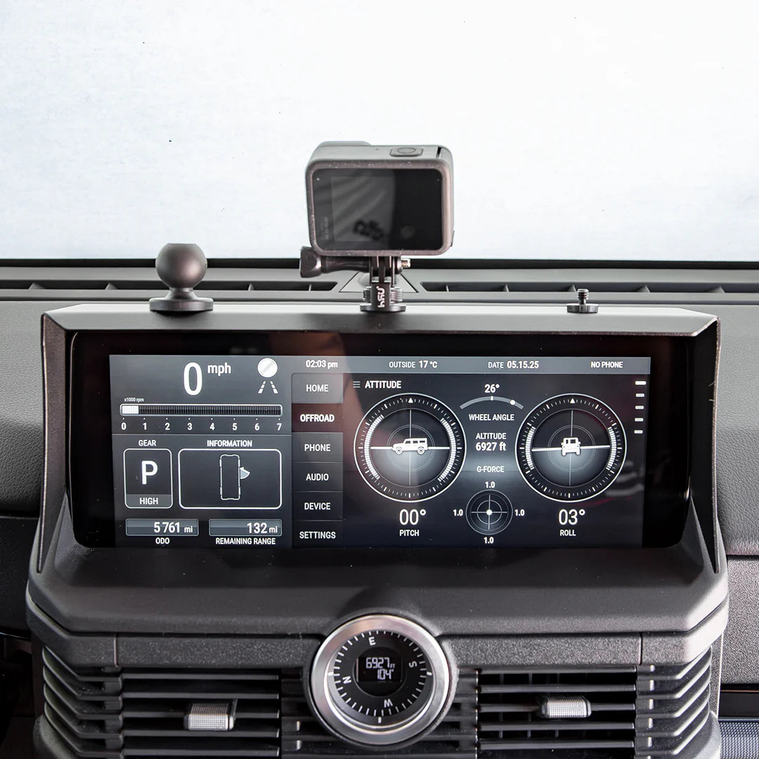 Transform your driving experience with the Rough Road Equipment Display Cover, specially designed for the Ineos Grenadier and Quartermaster. This durable, multi-functional screen and glare protector offers essential protection while serving as a flexible platform for accessories.
