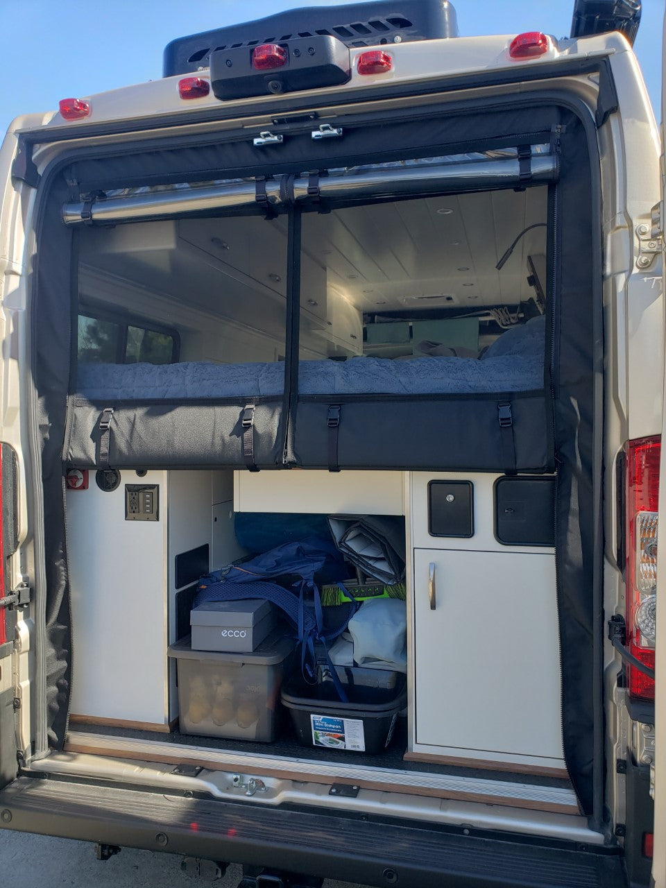 Say goodbye to bugs invading your living space with the RAM ProMaster rear garage insect screen. This innovative screen door for your ProMaster van combines functionality and durability, offering unparalleled protection. No matter where your road adventures take you, our bug screen provides easy van access while keeping insects out. Fully customizable to your van's bed height, the RAM ProMaster rear garage insect screen is a game-changer for van owners who value both convenience and comfort on the road.