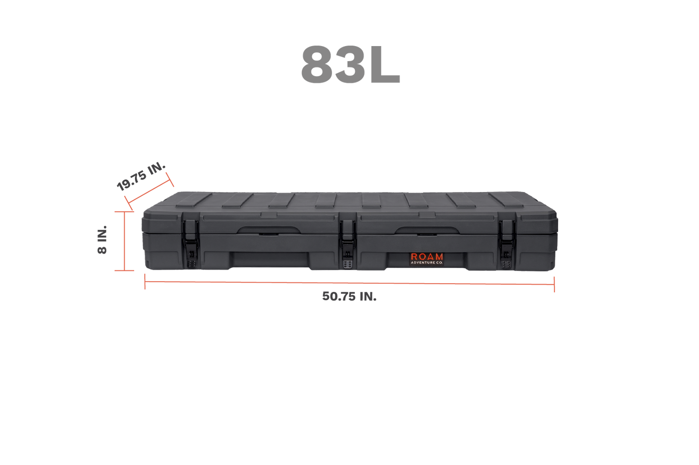 The ROAM 83L Rugged Case is a heavy-duty storage case that comes in 4 color options and is ideal for storing your long items such as chairs, shovels, axles, recovery gear or just adding more storage to any vehicle. Rugged low-profile storage that seamlessly mounts the roof of any vehicle. This premium case features a durable LLDPE shell, our proprietary Lid-Lift mechanisms, steel lockable latches, and a dust/water resistant gasket seal that makes sure your gear always stays protected no matter the weather or terrain. The threaded inserts in the lid give you the ability to add a lid organizer or molle panel to take your organization to the next level. Having an interlocking design makes stacking and pairing simple no matter the amount of gear you carry.