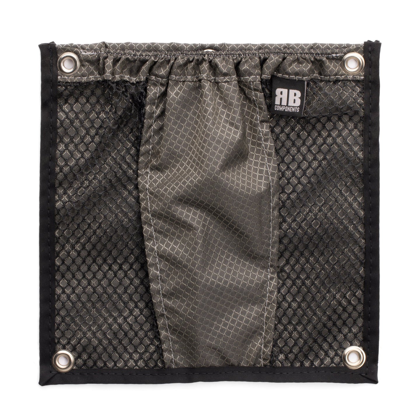This 10" x 10" stuff bag mounts just about anywhere to allow easy access. The elastic top bands keeps "stuff" inside while the open mesh design allows you to see what "stuff" is in your bag.