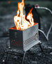 Frozen but on fire. Silver with snow, black with solidified magma, and red hot with lava. Hekla is one of the most active volcanos in the world and the Hekla LavaBox is one of the hottest campfires in the market. It is constructed of brushed 304 stainless steel and heavy duty steel rivets. Inside you'll find our fiery-hot stainless steel burner ready to blow the doors off any other fire pit. You'll also find our cooking burner ready for culinary action. It's all topped off with a beautiful leather handle and brass fittings.