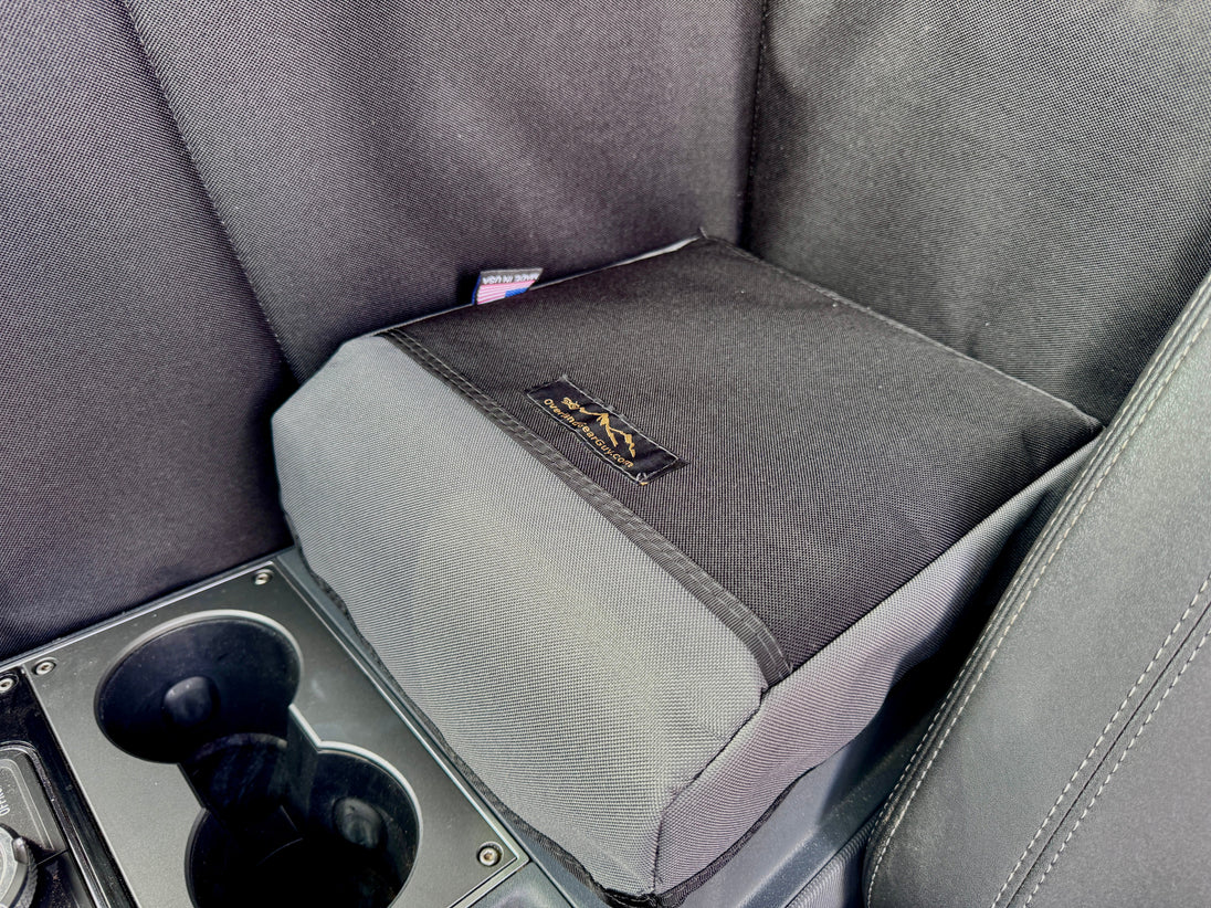 Tough, stylish, and made in the USA — the Grenadier Console Cover shields your center console from pet claws, dirt, and daily wear. Built with rugged materials and designed for a perfect fit, it features handy slip pockets for sunglasses, pens, lighters, napkins, and more. Available in multiple colors to match your interior.