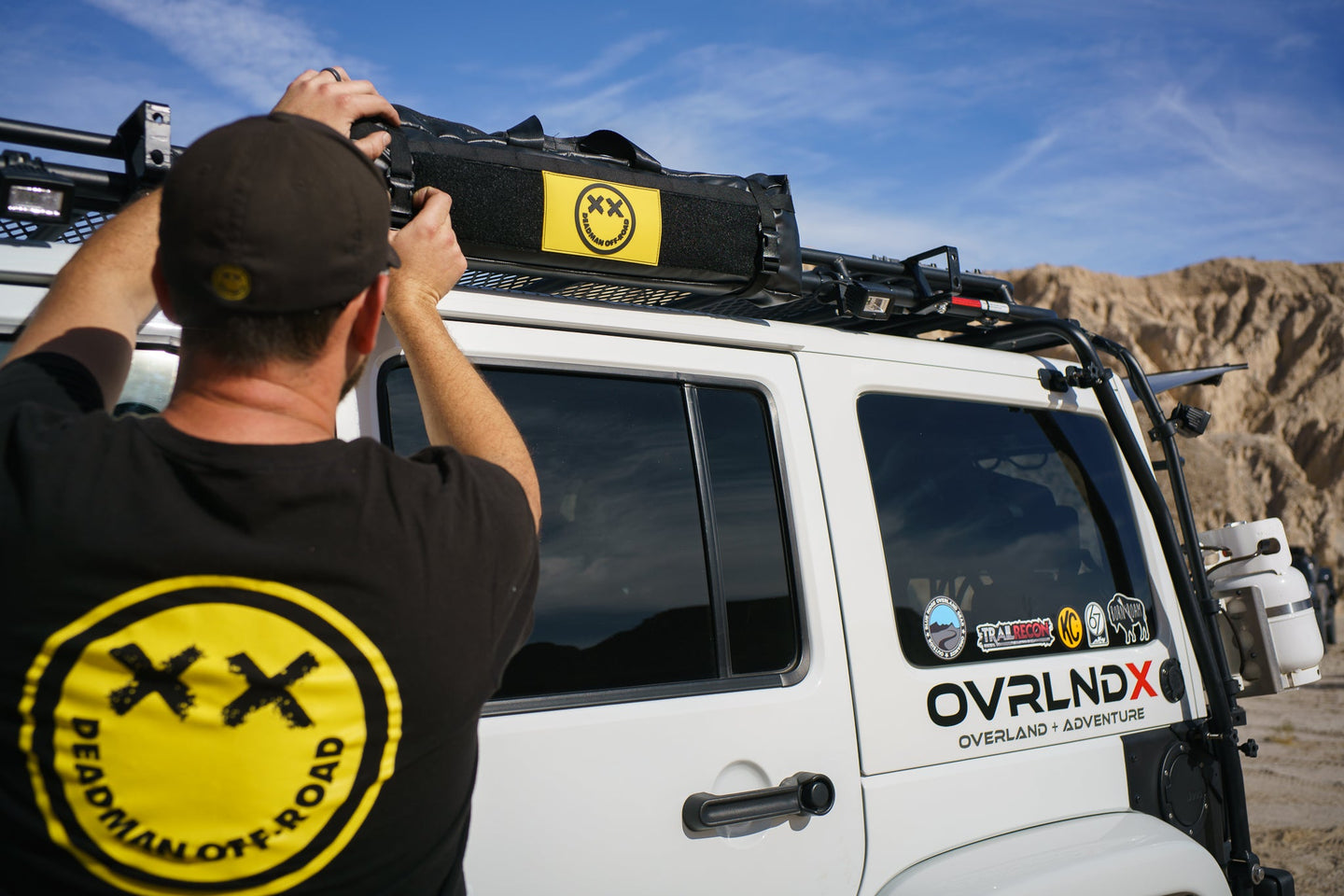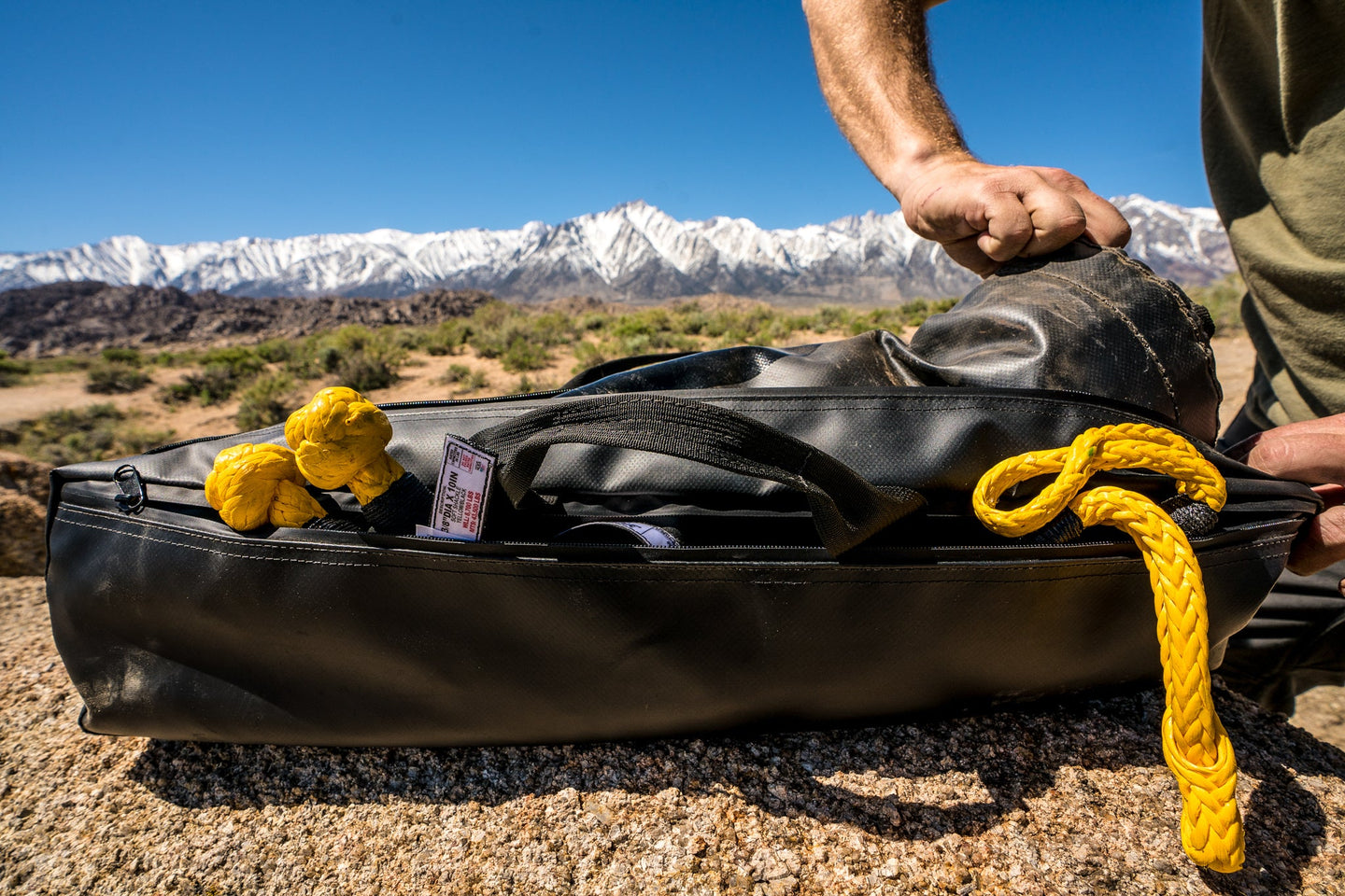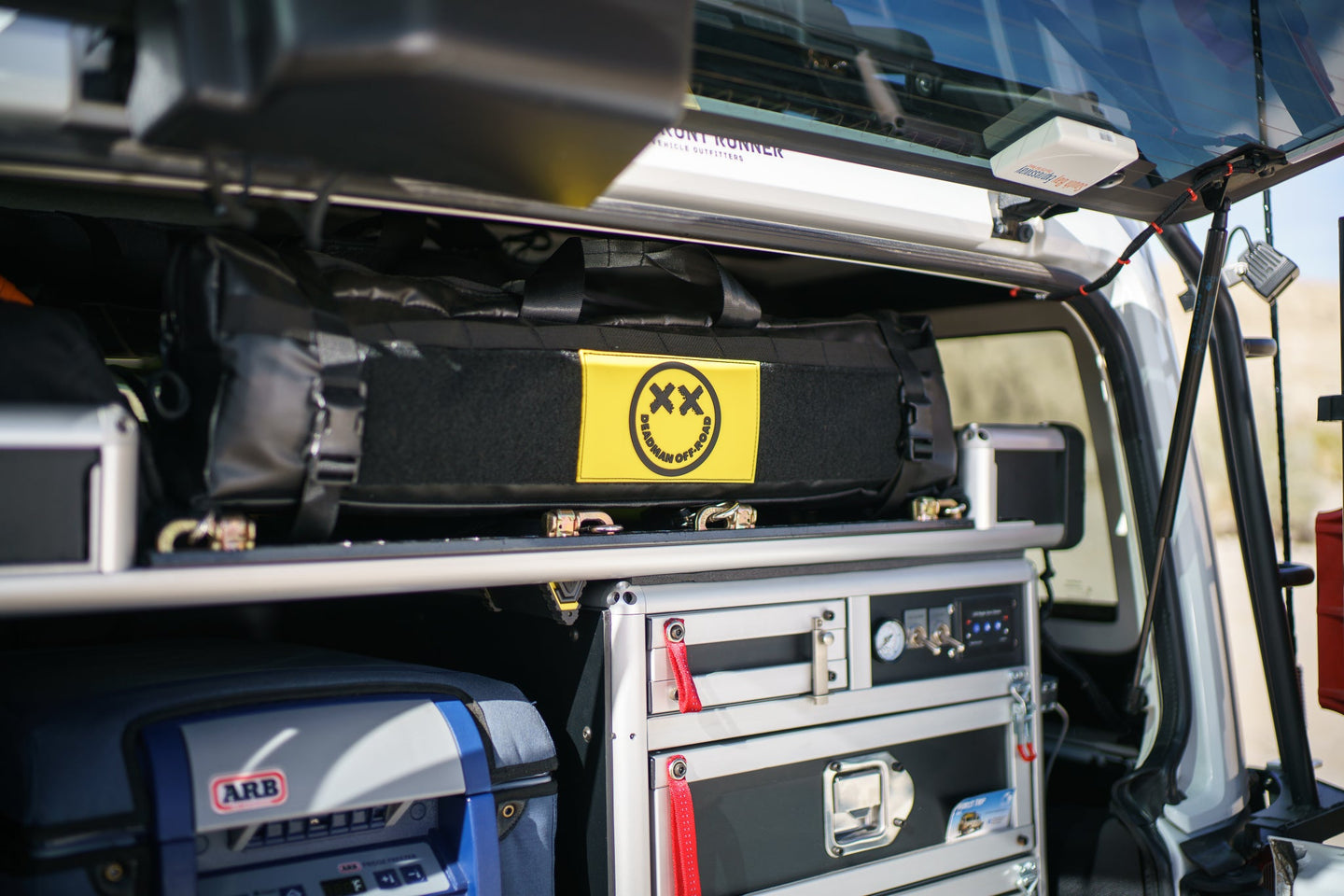 After the recovery, clean up the evidence with the Deadman Bodybag. Designed specially to hold the Deadman Earth Anchor or the Stretchy Band. The bag is large enough to carry your soft shackles, and some gloves, pretty much everything you need for a straight forward self-recovery. Strap it to your roll bars or throw it in the back of your rig & go!