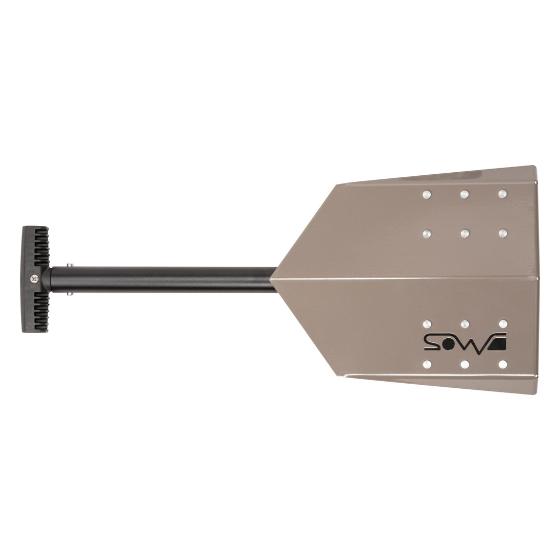 The Delta is the result of American engineering, premium materials, and meticulous attention to detail. Once you feel it in your hand, you’ll know. Made with 14 gauge carbon steel, it’s a strong, collapsible, and high-performance shovel. Extremely portable, the shovel packs down to just 24” x 10.5” x 3” (61 cm x 27 cm x 9 cm) and weighs only 5.7 lb. (2.6 kg)