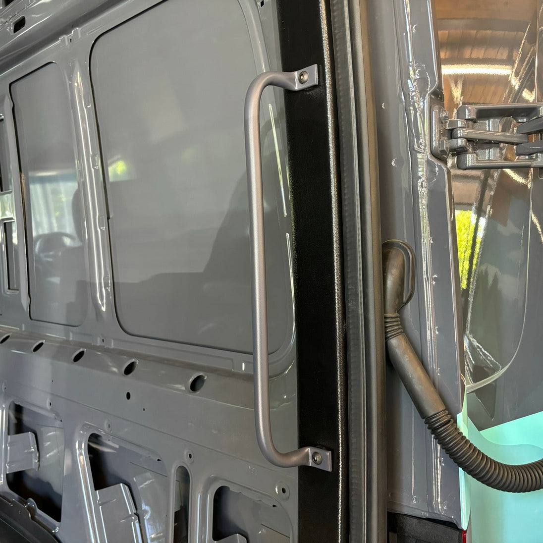 Make getting into your Sprinter easier with our rear door grab handle, designed to fit either side of the rear doors. It installs quickly using the factory pre-threaded holes—no drilling required.