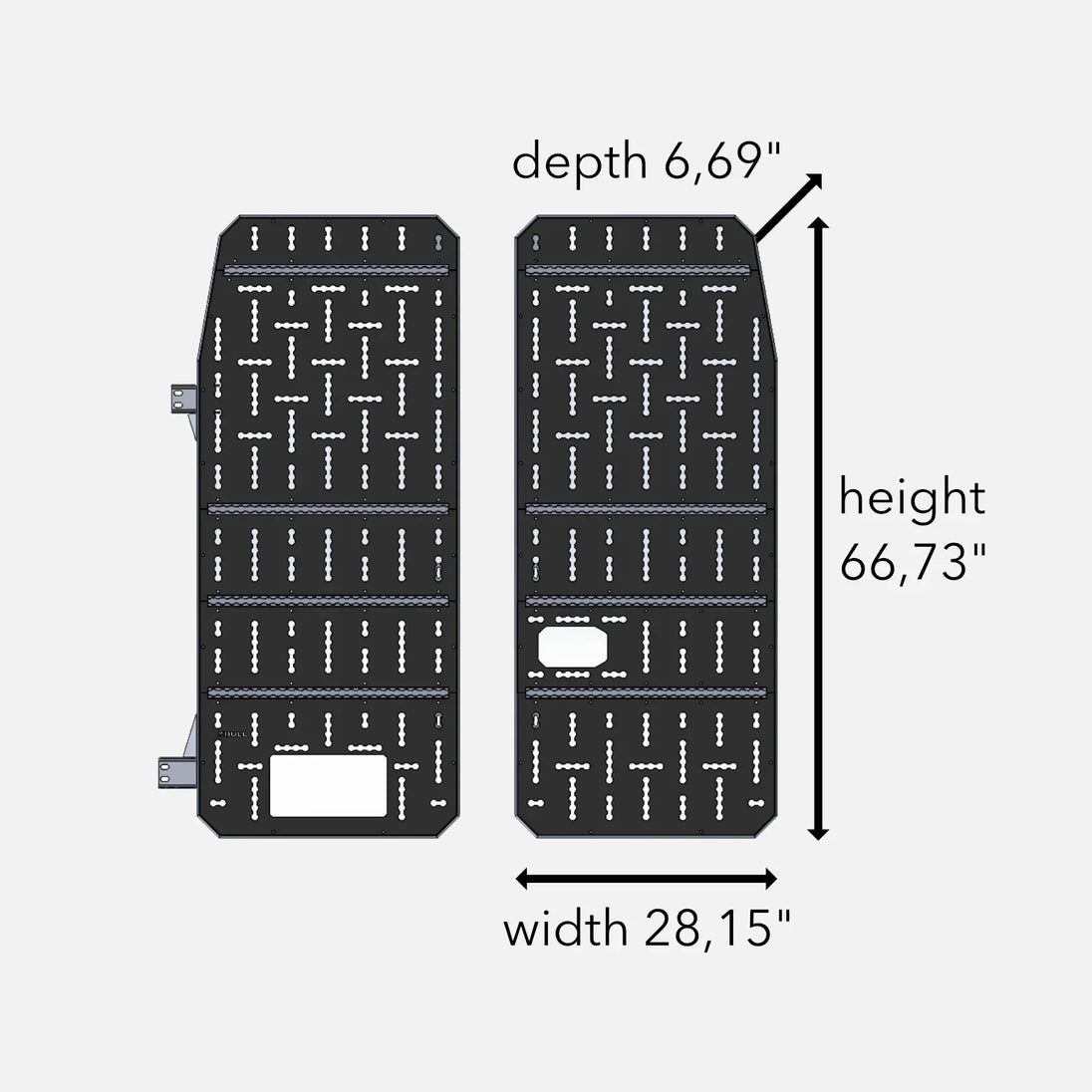 Enhance your vanlife adventure with the XBULL Rear Cargo Carrier—a revolutionary, no-drill solution with 5 mounting points per door designed for the Mercedes Benz Sprinter and compatible RVs like the Winnebago Revel and Storyteller Overland. Crafted for strength and versatility, this cargo system transforms how you transport your gear.