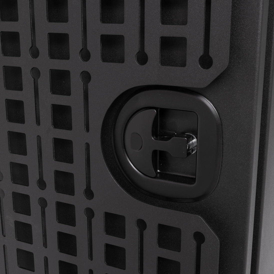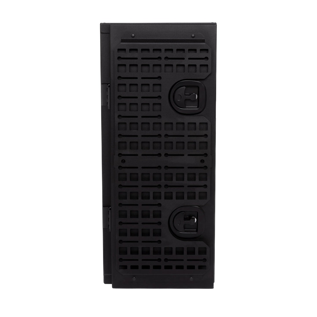 At RB Components, our history is built on a foundation of innovation and excellence in design and construction. Our Medium Storage Box continues this tradition, offering advanced functionality and robust durability. Designed specifically for rear door storage, this box provides a practical solution for organizing and easily deploying your outdoor gear. The exterior panel features a MOLLE grid and carriage bolt attachment, while the sturdy adjustable locking latches ensure all-weather operability. A rubber bulb door seal provides additional protection, and the aluminum construction with a textured black powder coat finish ensures long-lasting performance. The box also includes door limit cables set at 90 degrees and an optional adjustable shelf for tailored storage solutions. With exterior dimensions of 43"x18"x15" and a capacity of 6.72 cubic feet, it combines ample storage space with a manageable weight of 26 lbs.