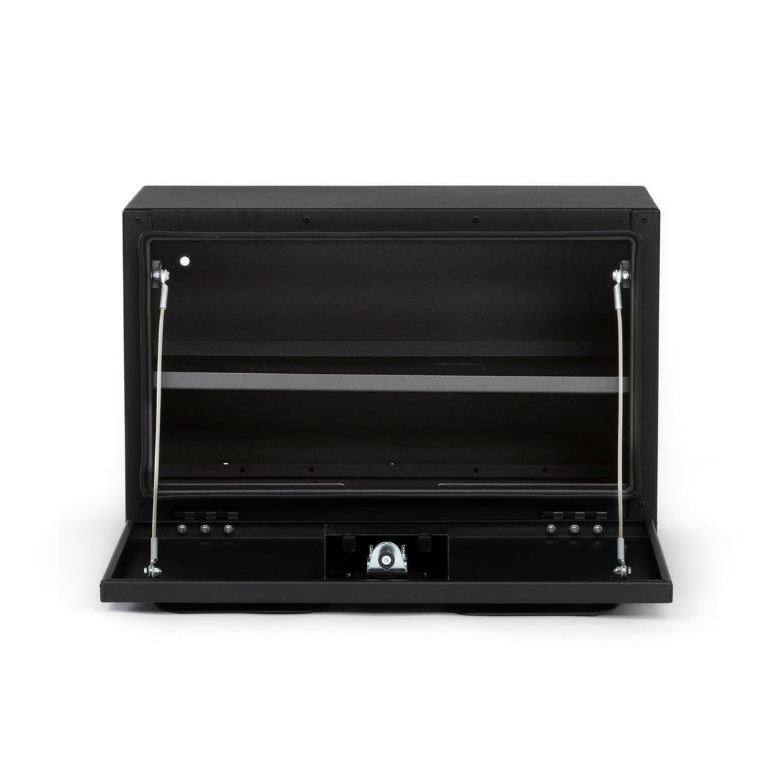 At RB Components, our history is built on a foundation of innovation and excellence in design and construction. Our Small Storage Box continues this tradition, offering advanced functionality and robust durability. Designed specifically for rear door storage, this box provides a practical solution for organizing and easily deploying your outdoor gear. The exterior panel features a MOLLE grid and carriage bolt attachment, while the sturdy adjustable locking latches ensure all-weather operability. A rubber bulb door seal provides additional protection, and the aluminum construction with a textured black powder coat finish ensures long-lasting performance. The box also includes door limit cables set at 90 degrees and an optional adjustable shelf for tailored storage solutions. With exterior dimensions of 18"x29"x15" and a capacity of 4.53 cubic feet, it combines ample storage space with a manageable weight of 18 lbs.