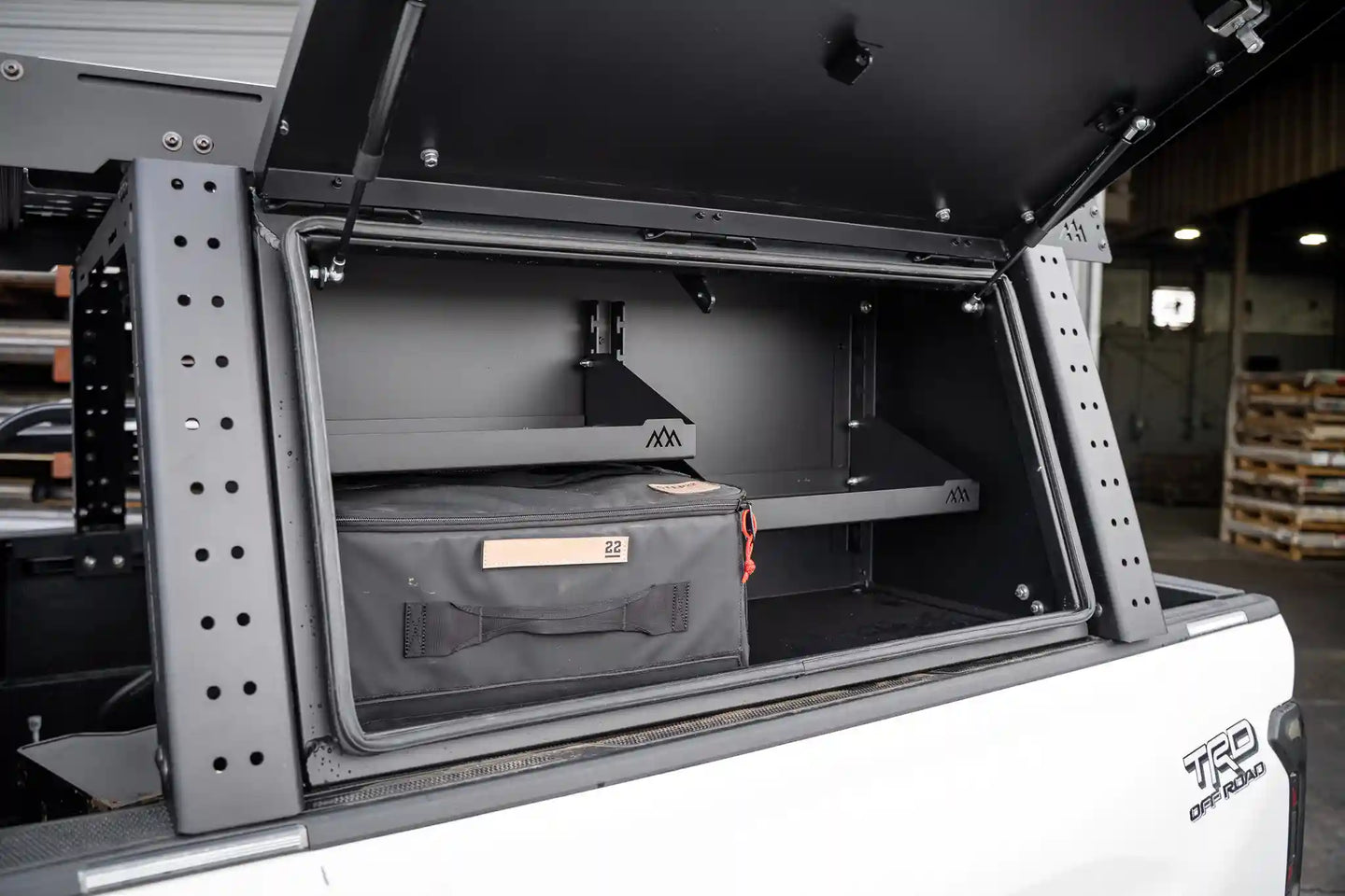 The Overland Bed Rack Storage Box for the Toyota Tacoma is the ultimate truck bed storage box. Most bed rack storage boxes on the market are made of injection molded plastic and don't hold up well over time, and they just don't look and feel premium. We think these trucks deserve a storage box that is made with premium materials, innovative features, and unbeatable functionality.