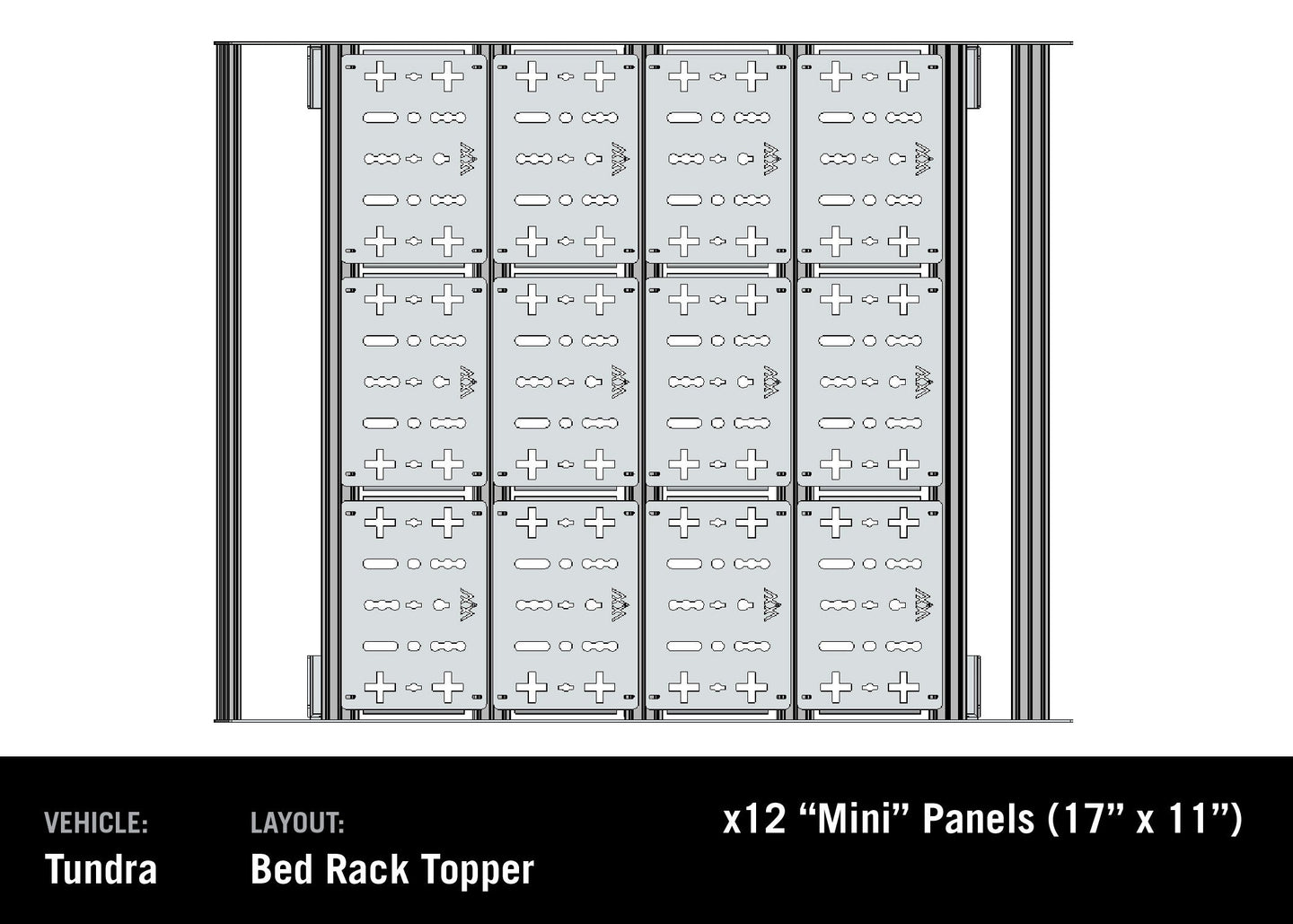 Our Toyota Tundra Bed Rack DRIFTR Topper essentially adds an entire roof rack on top of your full height bed rack. When paired with our DRIFTR Roof Rack, you get a super solid, even level deck from the front of your truck to the back.